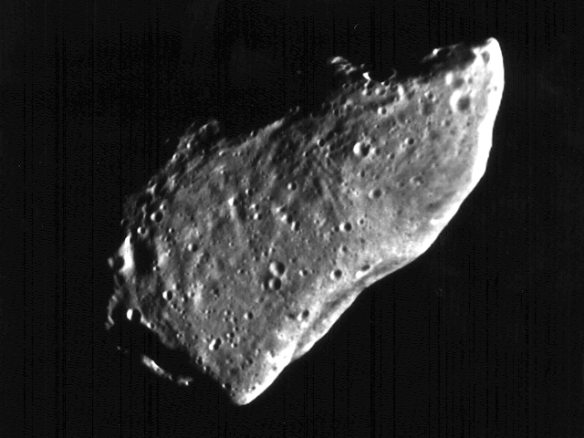 мозаика из двух снимков астероида Гаспра, полученных АМС