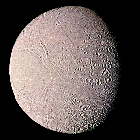 Мимас, Тефия, Диона, и Рея полностью усеяны кратерами.